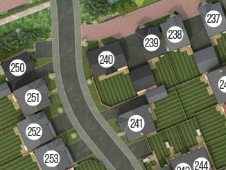 Plot 240 is located off a private driveway and has driveway parking to the front of the garage. The generous south facing rear garden is fully enclosed and will be turfed.