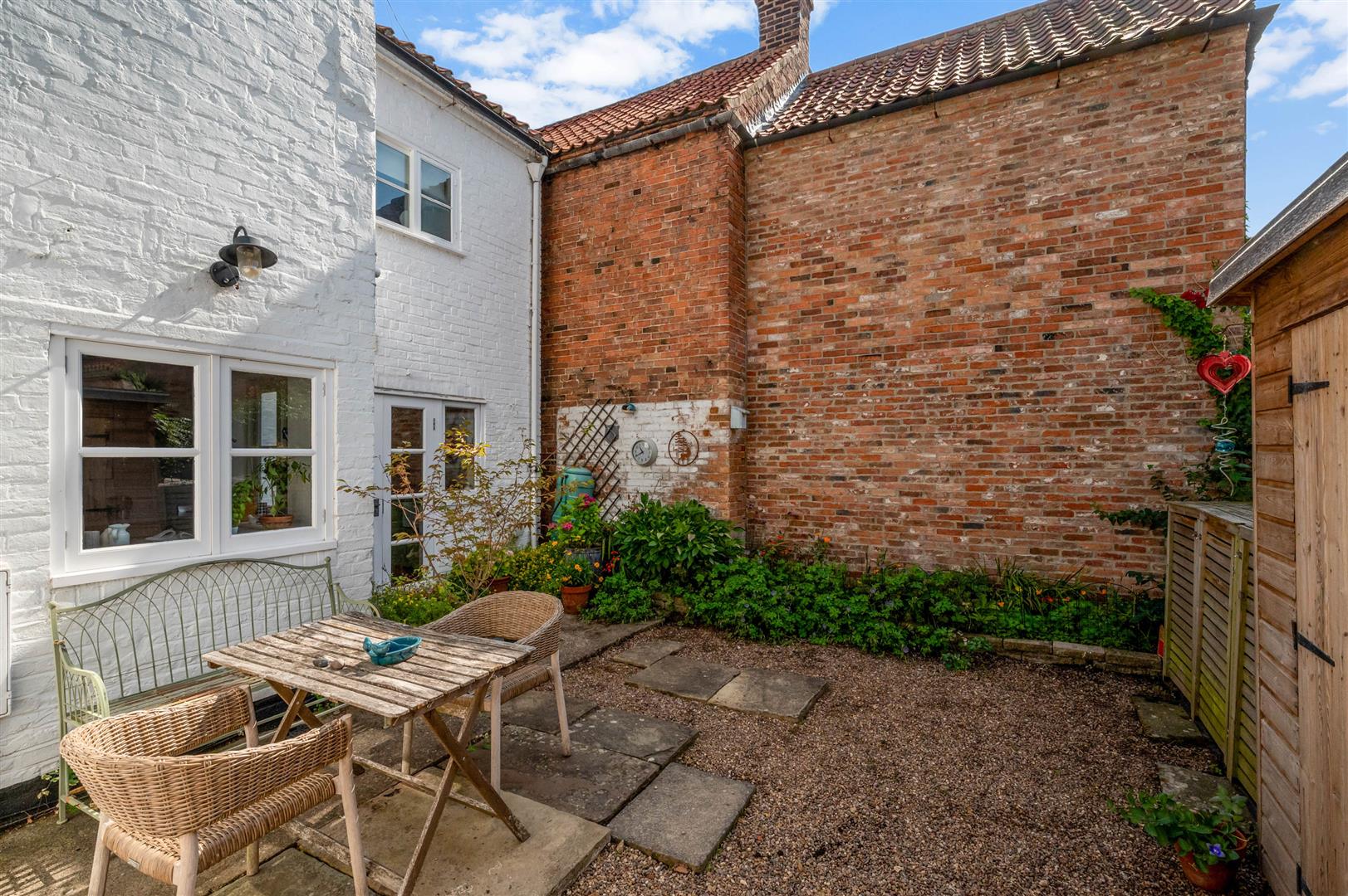 Exterior - The property occupies a delightful position right at the heart of the village, benefitting from a pretty aspect across to the village church. The property occupies what is a low maintenance plot fronting Loughbon but with a side access of Chapel Street, having ledge and brace gates that could, potentially, provide off road parking. However these aren't currently utilised as the garden is given over to a paved and gravelled seating area which benefits from a south westerly rear aspect, making it a delightful sun trap in the summer months and links back into the kitchen, providing a useful outdoor entertaining space. The garden encompasses a timber storage shed and bin store with adjacent established borders.