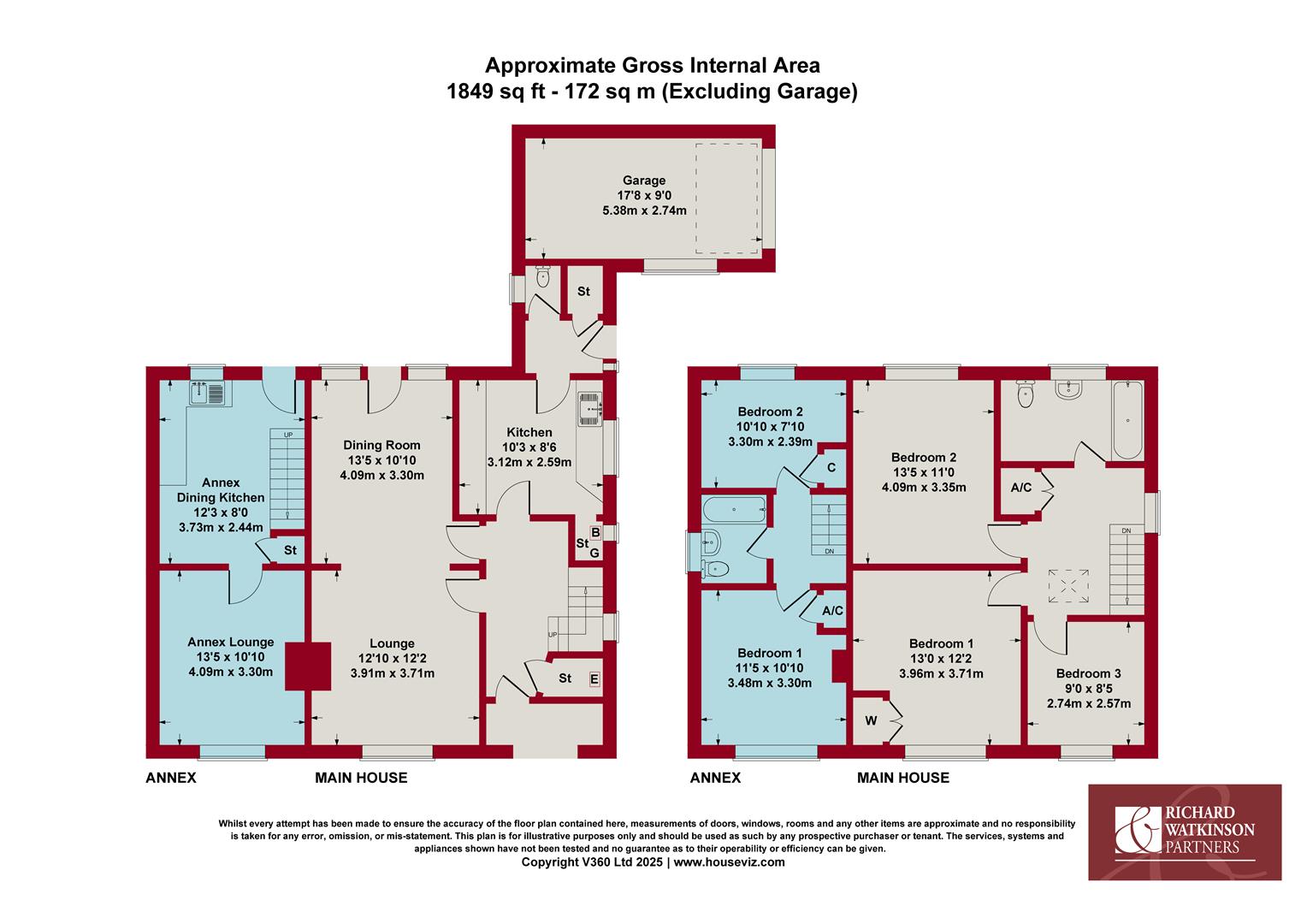 1B The Green is registered as council tax band B as it is considered a self contained dwelling by the Valuation Office Agency. Buyers can apply to have this changed in the event they are converting the property into 1 main dwelling, rather than 1 plus annex.