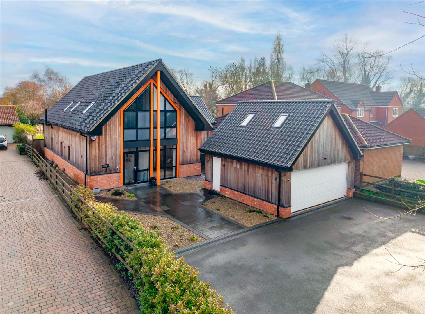 Exterior - The property occupies a now established plot, relatively generous by modern standards, set well back from the main road behind a double field gate access onto a substantial tarmacadam driveway which provides a considerable level of off road parking. To the side of this are established borders with inset trees and shrubs. The driveway continues to a further paved area with block set edging and chipping borders and, in turn, leads to the front door. A further courtyard area provides a useful space for bin storage and also houses the air source heat pump. A courtesy gate to the side in turn leads into the rear garden which is a pleasant feature of the property being relatively generous by modern standards, enclosed by trellising, feather edged board fencing and brick walls and having an initial substantial plank effect tiled terrace which runs beneath a covered portico creating an interesting architectural feature as well as a covered seating area that links back into the kitchen allowing this area to be utilised all year round and providing an excellent entertaining space. The majority of the garden is laid to lawn with well stocked perimeter borders with a range of established trees and shrubs, having a further paved seating area that links into the living space and provides a pleasant sheltered courtyard area.