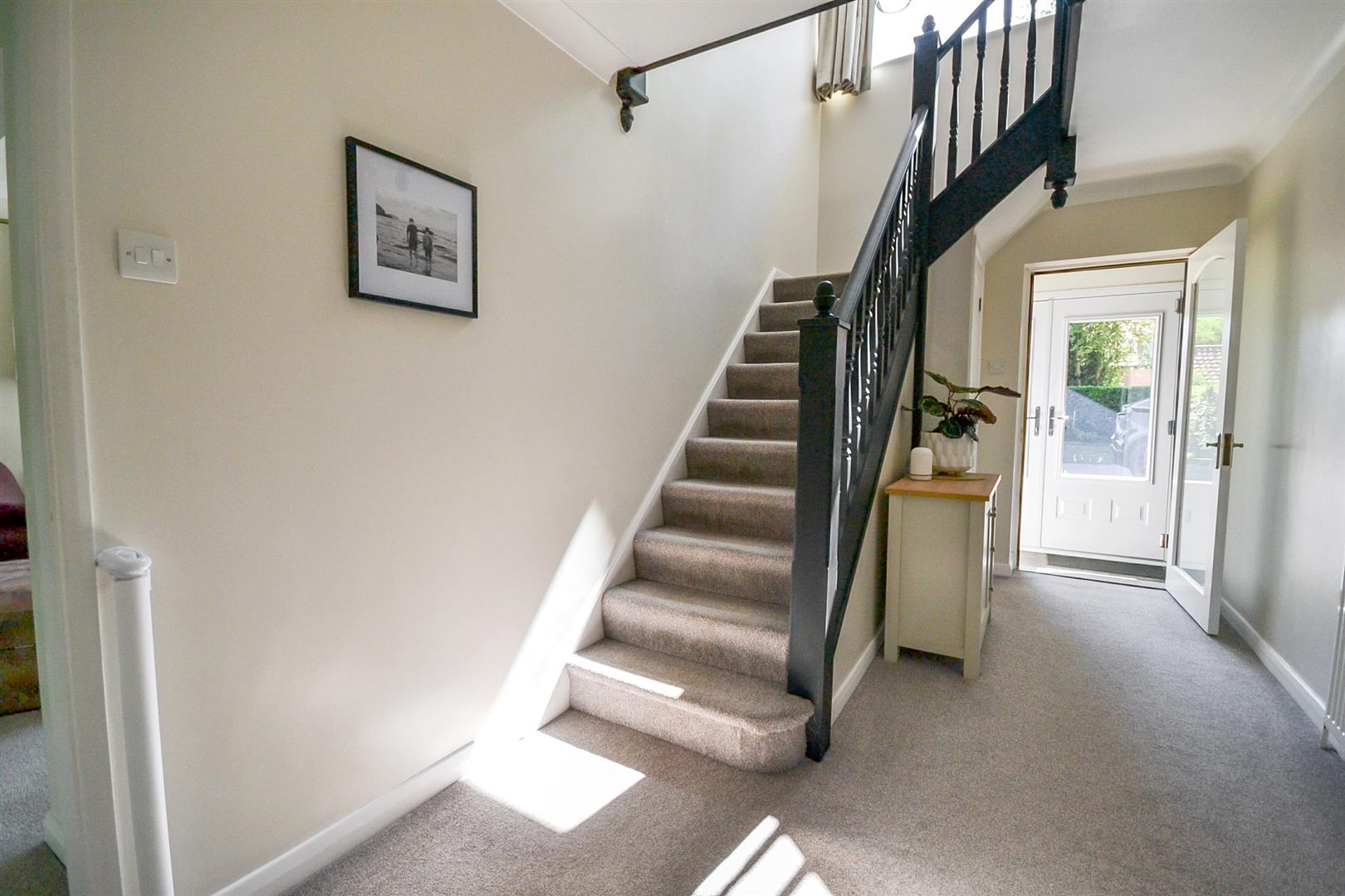 Entrance Hall - An impressive and welcoming entrance hall with a staircase rising to the galleried landing above, a central heating radiator and a useful built-in cupboard over the stairs with coat hooks and a uPVC double glazed obscured window.