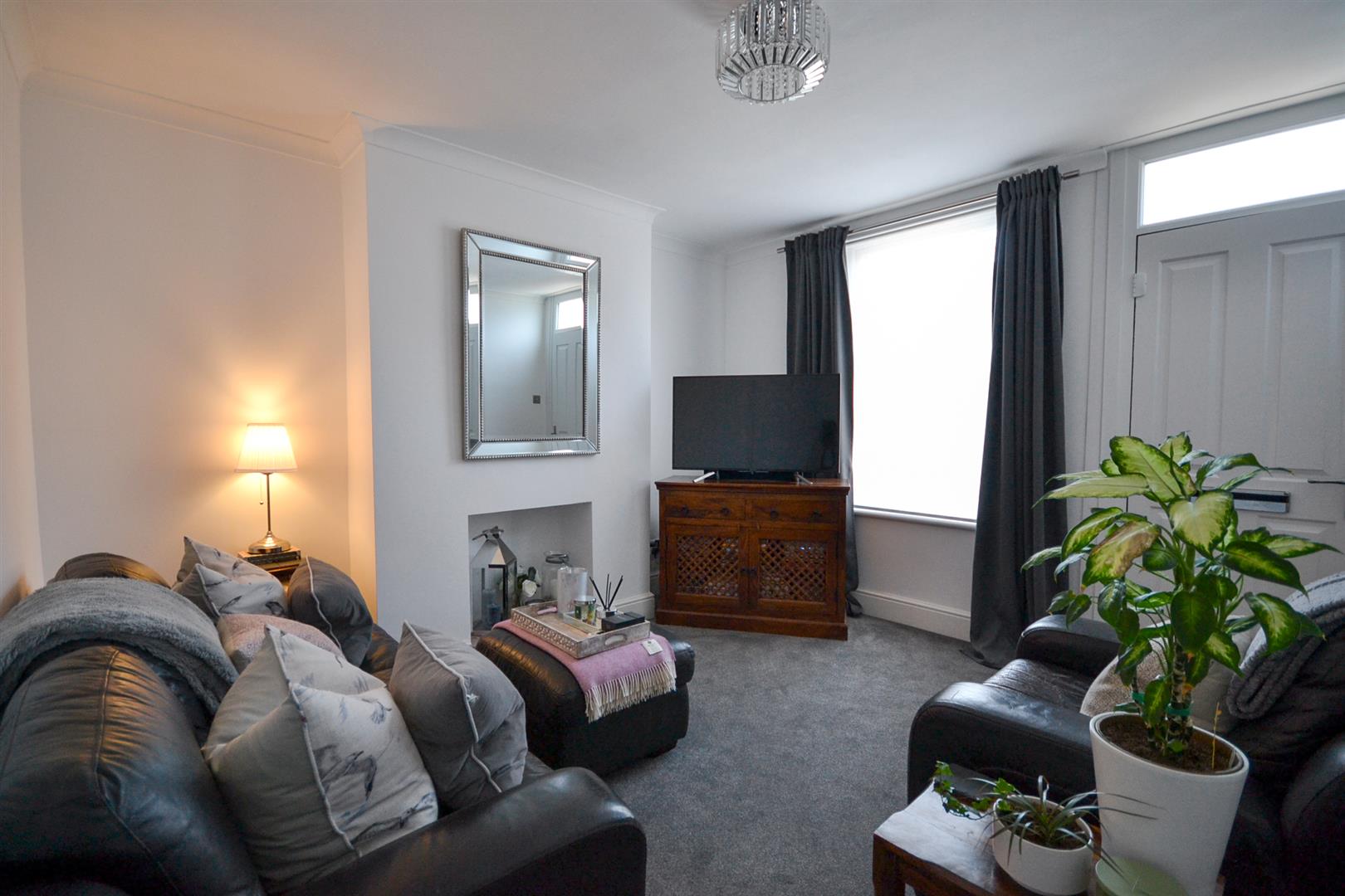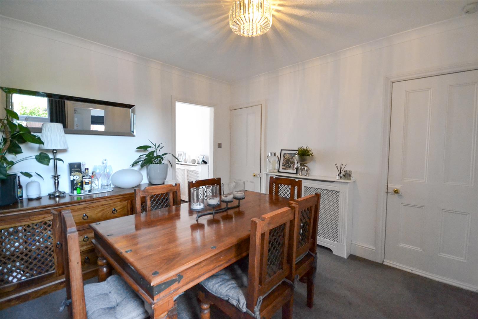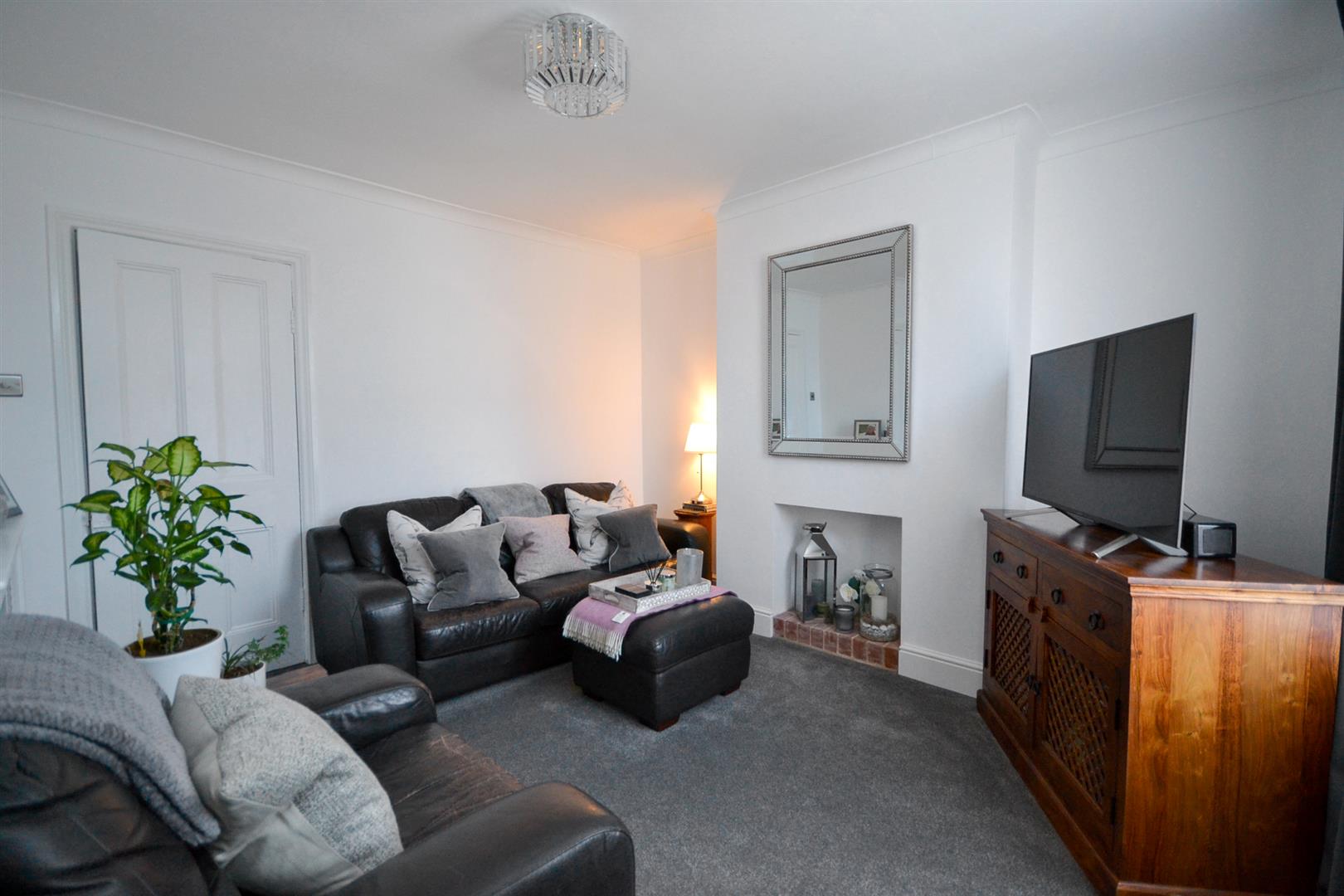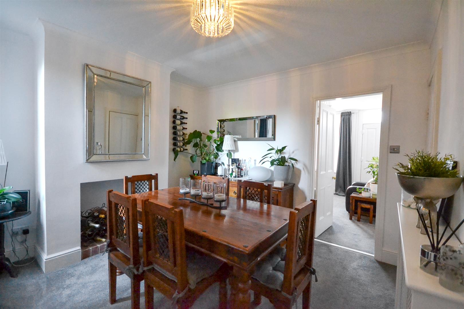 Lounge - Having coved ceiling, a central heating radiator, TV point and UPVC double glazed window to the front elevation. There is a chimney breast with decorative raised brick hearth and an original four panelled door leading into the dining room.