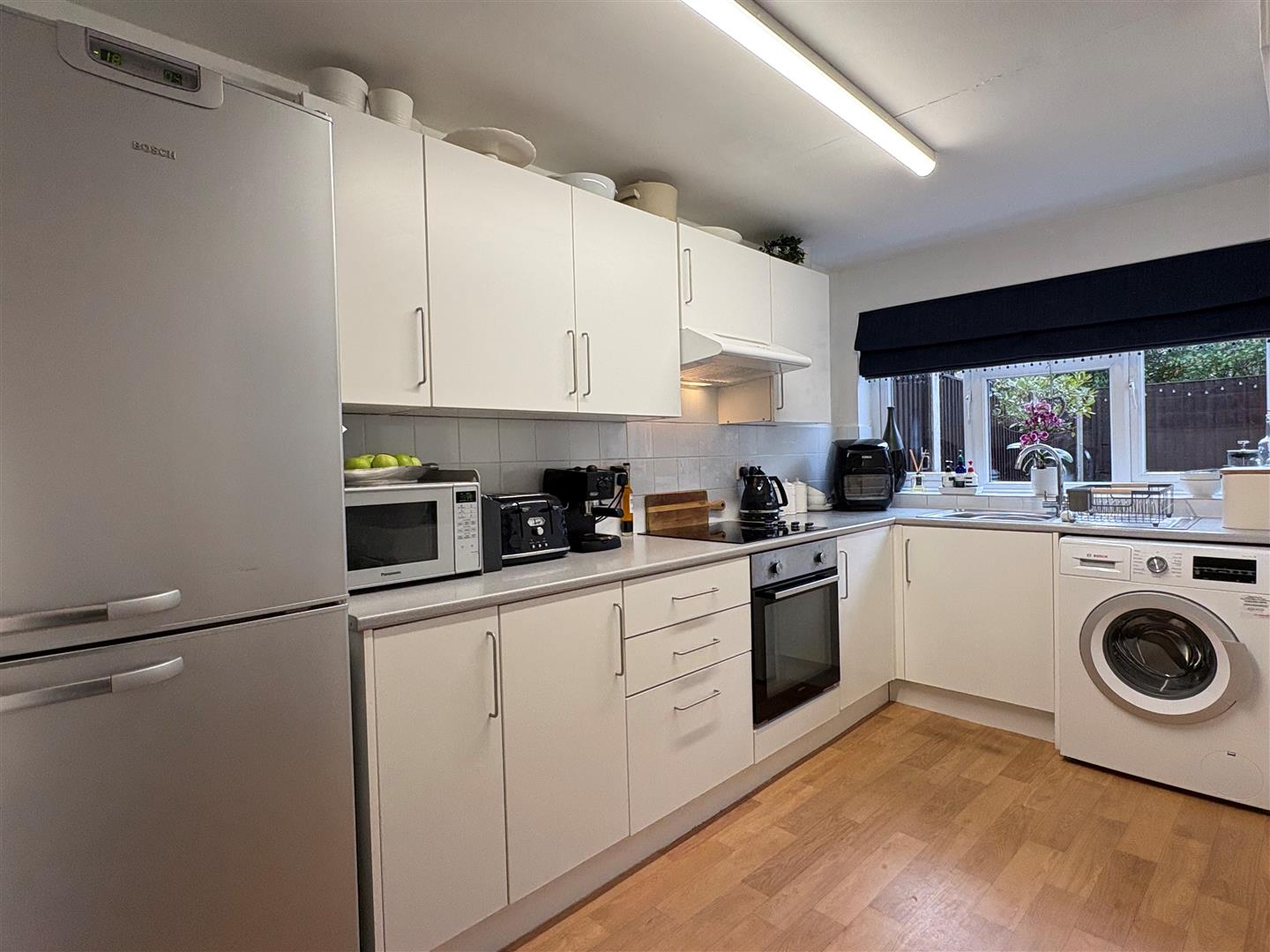 Kitchen - The kitchen is fitted with a range of base and wall-mounted units with rolled-edge work surfaces and complementary tiled splashbacks. There is an inset stainless steel sink with mixer tap, along with a built-in oven, four-ring electric hob and extractor hood over.