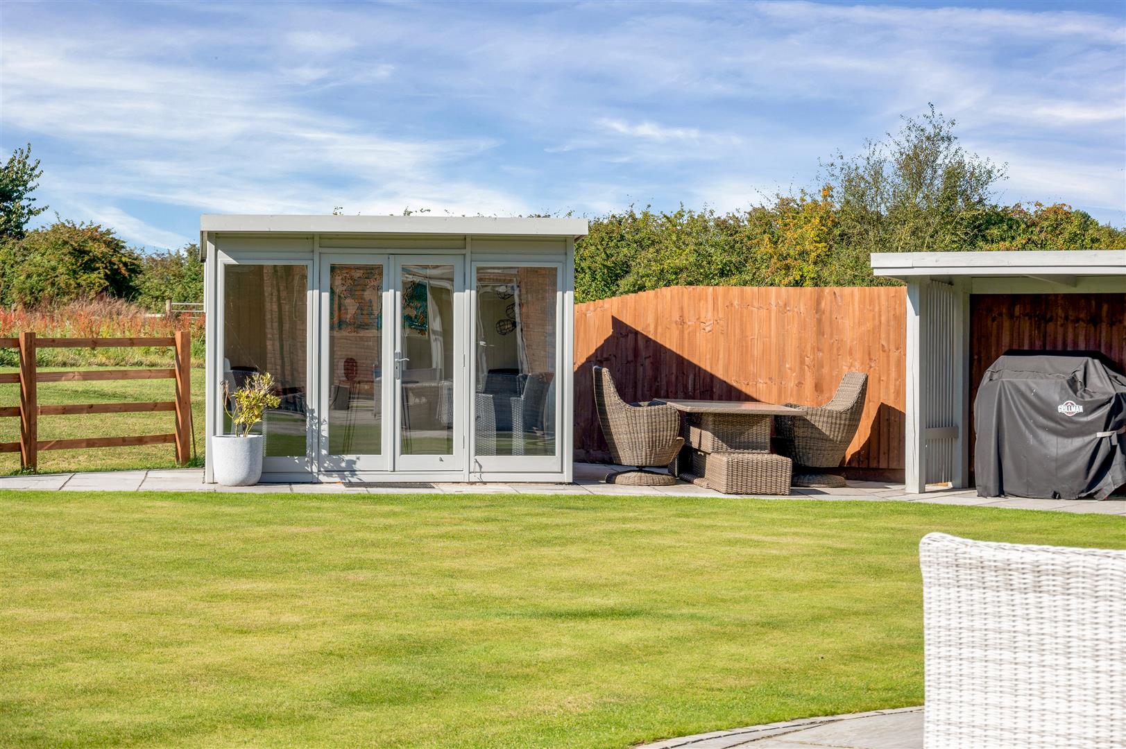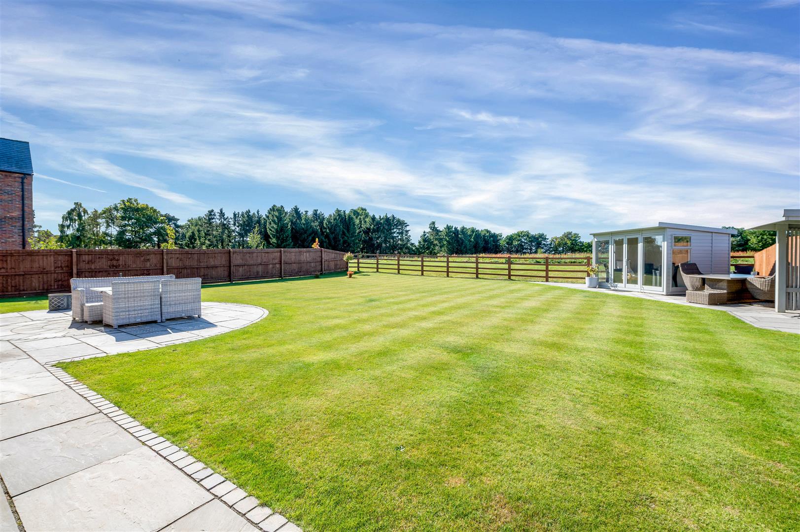 As well as the internal accommodation, which benefits from under floor heating to the ground floor and tasteful decoration throughout, the property occupies a delightful plot, generous by modern standards, set back from the lane behind a hedged and post and rail frontage, with gated access onto a generous driveway and attached double garage. The rear garden affords a pleasant aspect across to adjacent paddocks with a large paved terrace, central lawn, timber summer house (which could offer potential as an outside office) and pergola.