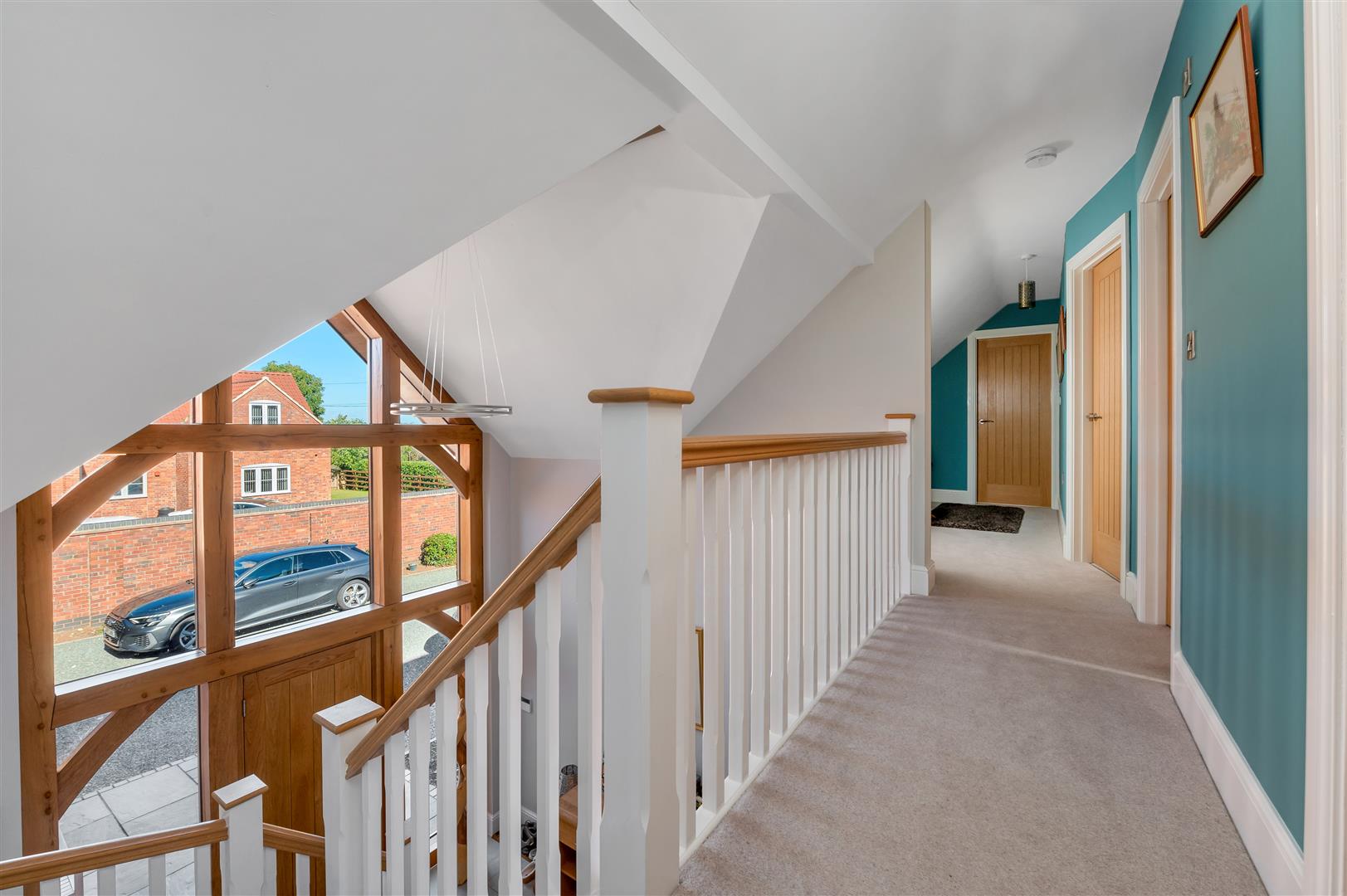 Galleried Landing - Having a delightful aspect down into the hallway, part pitched ceiling and oak framed glazed gable end.