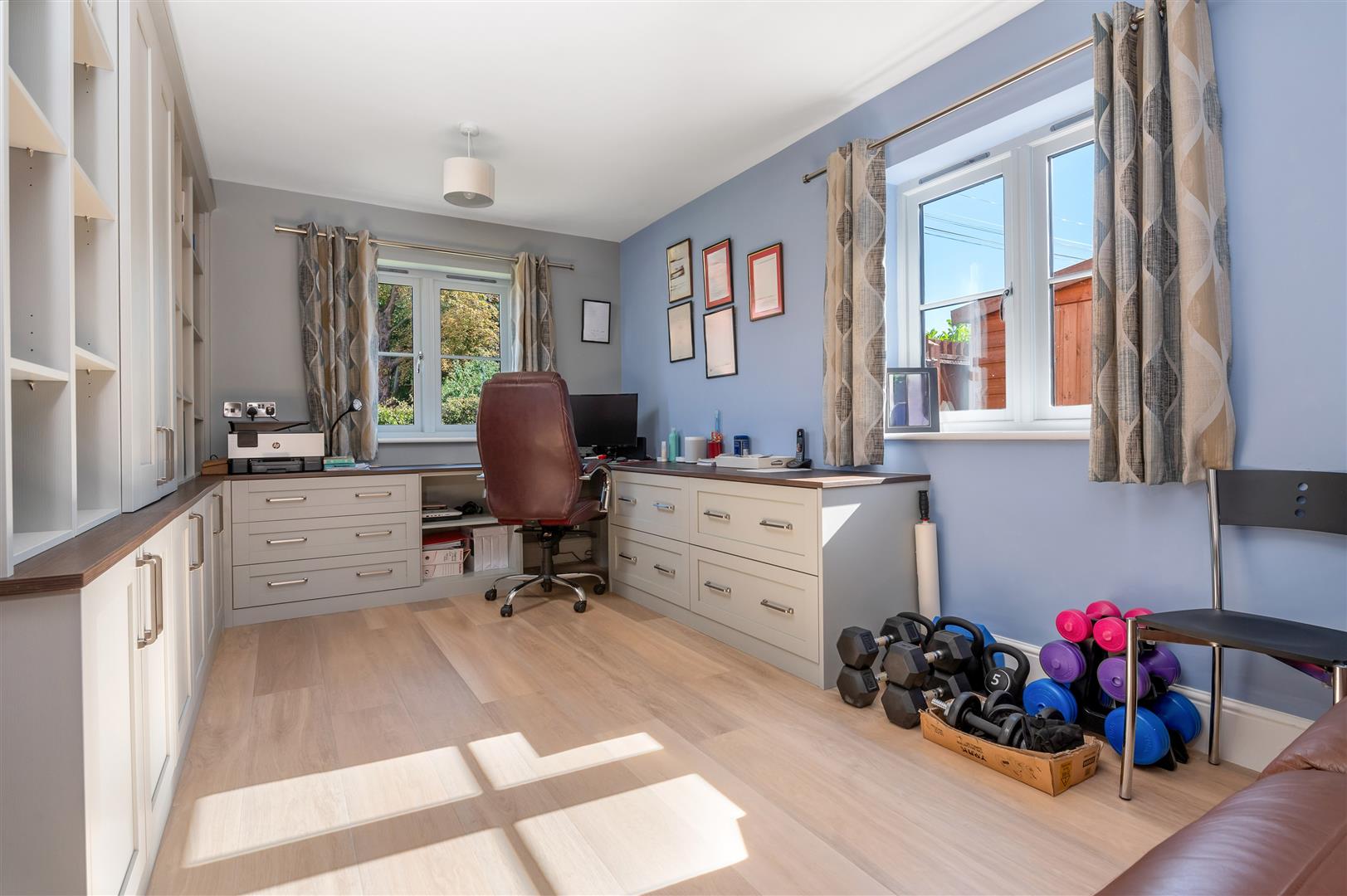 Family Room / Study - 5.38m x 2.97m (17'8 x 9'9) - A well proportioned versatile reception space beautifully appointed having been fitted with a range of bespoke furniture creating a fantastic home office perfect for today's way of working. Alternatively this room could be utilised as formal dining or an additional snug or playroom. Having deep skirting, double glazed windows to the front and side elevations.