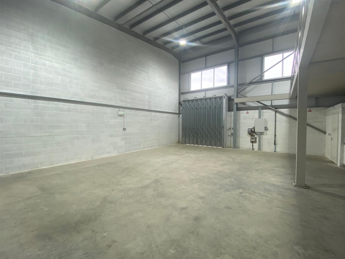 The unit provides a mezzanine floor and eaves height 6.4m to 7.45 m approximately.