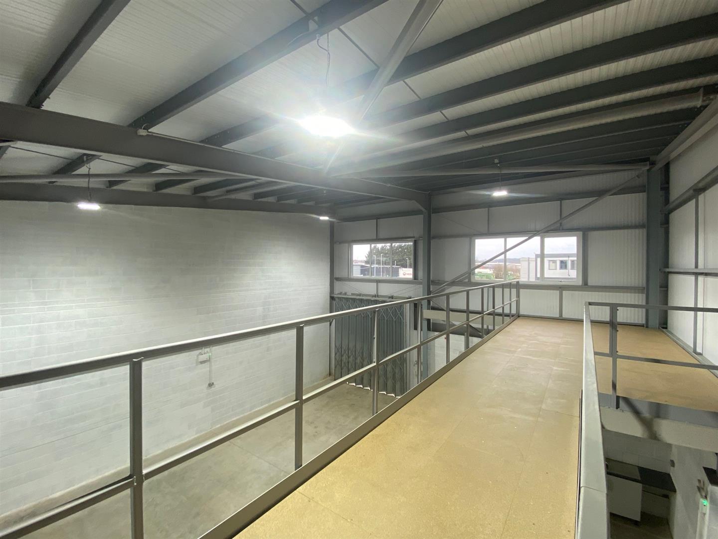 Mezzanine - 11.28m x 3.05m (37' x 10') - With steel steps providing access. The mezzanine is designed for storage only within the building regulations.