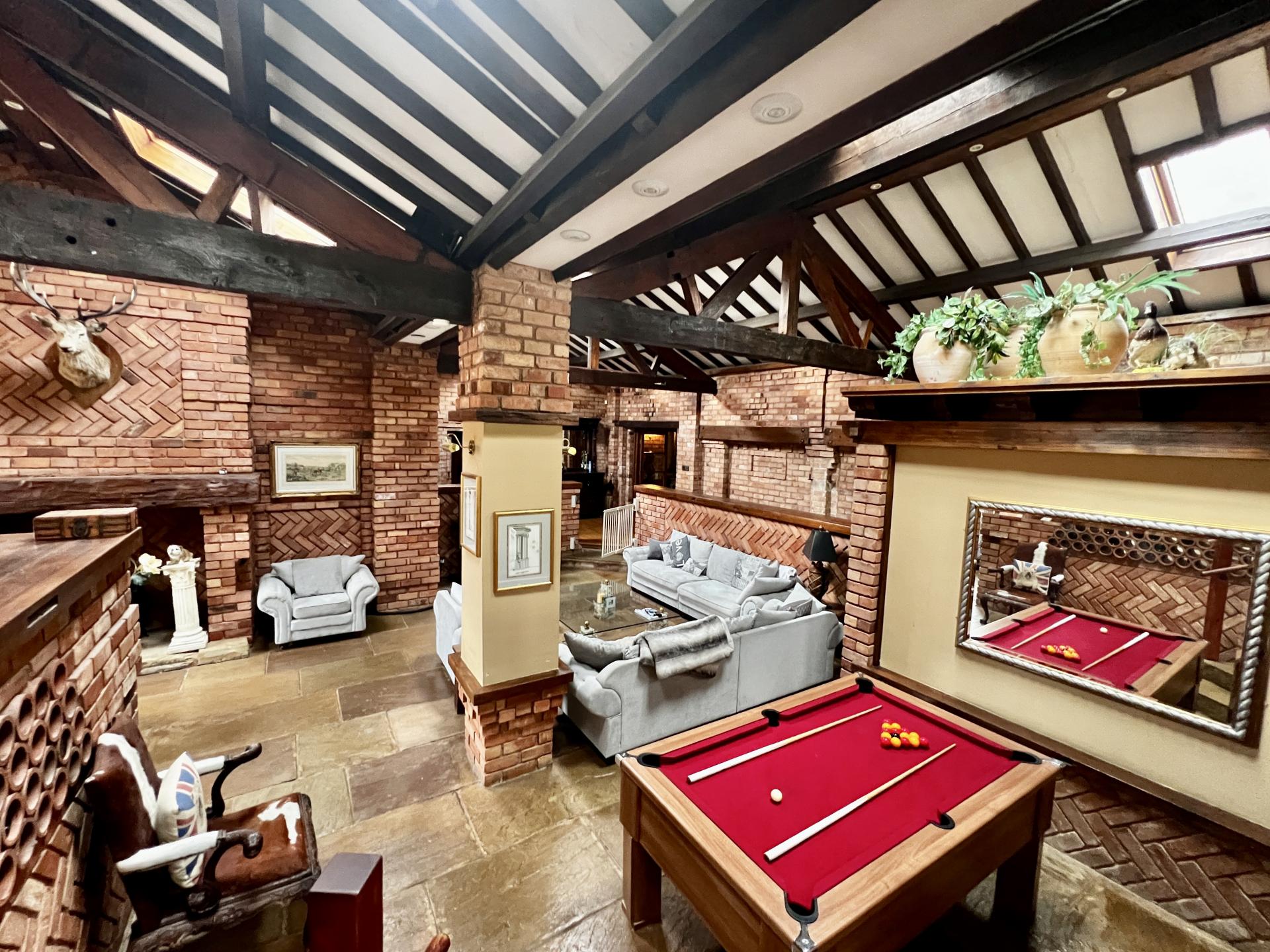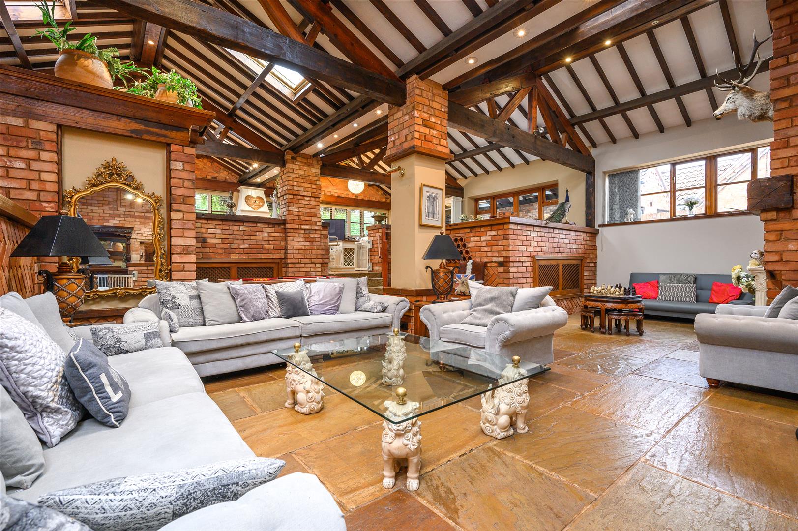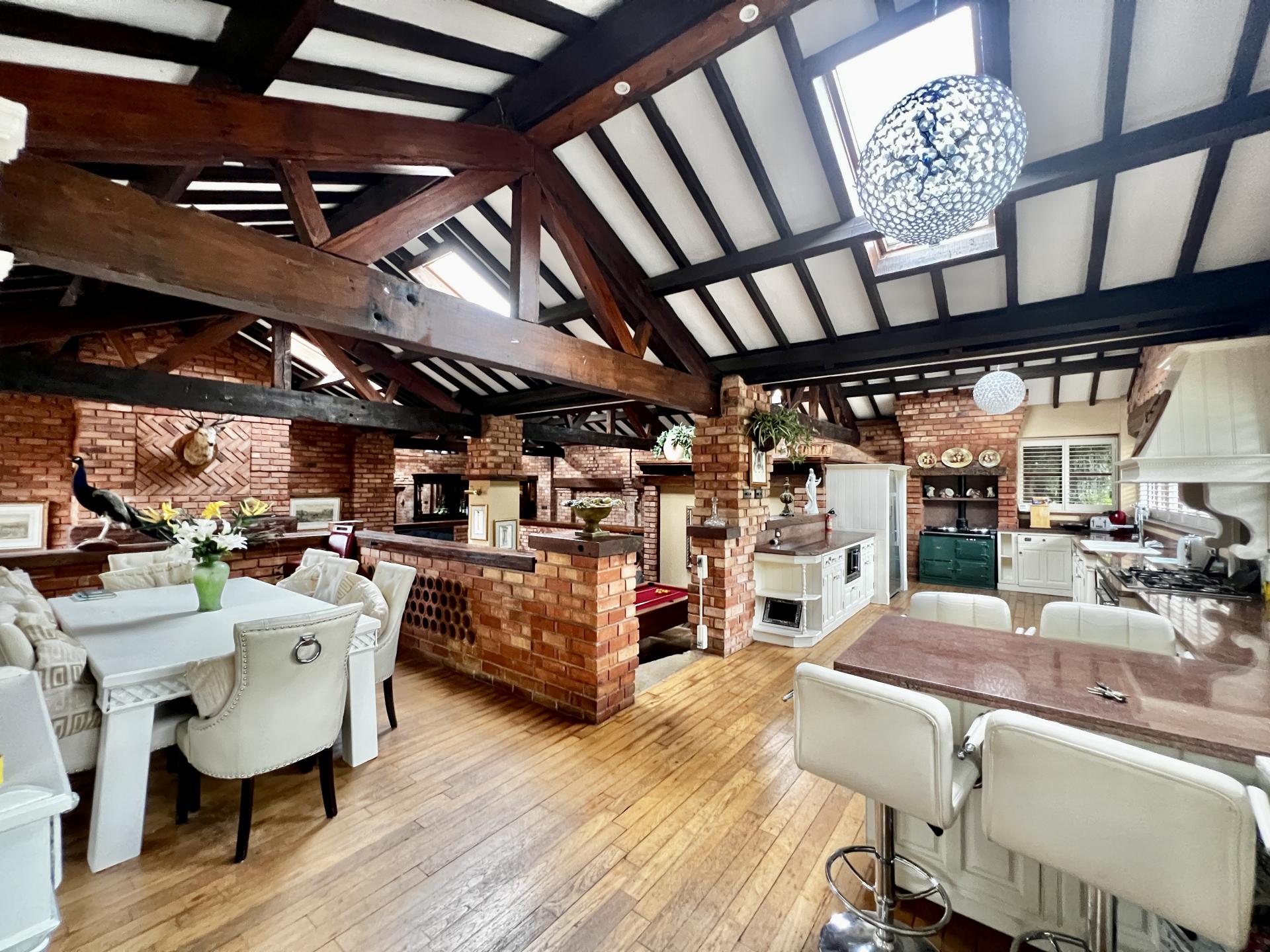 A unique characterful furnished barn conversion occupying an enviable position within this exclusive residential development nestled at the heart of the Nottinghamshire Golf & Country Club. The property sits within its fully enclosed and prominent corner plot with electric gates onto a driveway with a carport and formal gardens to the front and rear which affords spectacular panoramic views across the golf course and driving range.The property offers 4000 sq ft of living space consisting of a single storey house and converted coach house providing a 2 bedroom annexe. The house has an impressive open plan sunken living space in the heart of the property, with a kitchen, dining area, conservatory and utility room and three bedrooms all with en-suites and two with dressing rooms. the annex consists of an open plan kitchen and living space, shower room and two double bedrooms.A viewing is recommended to appreciate the size and position of this property