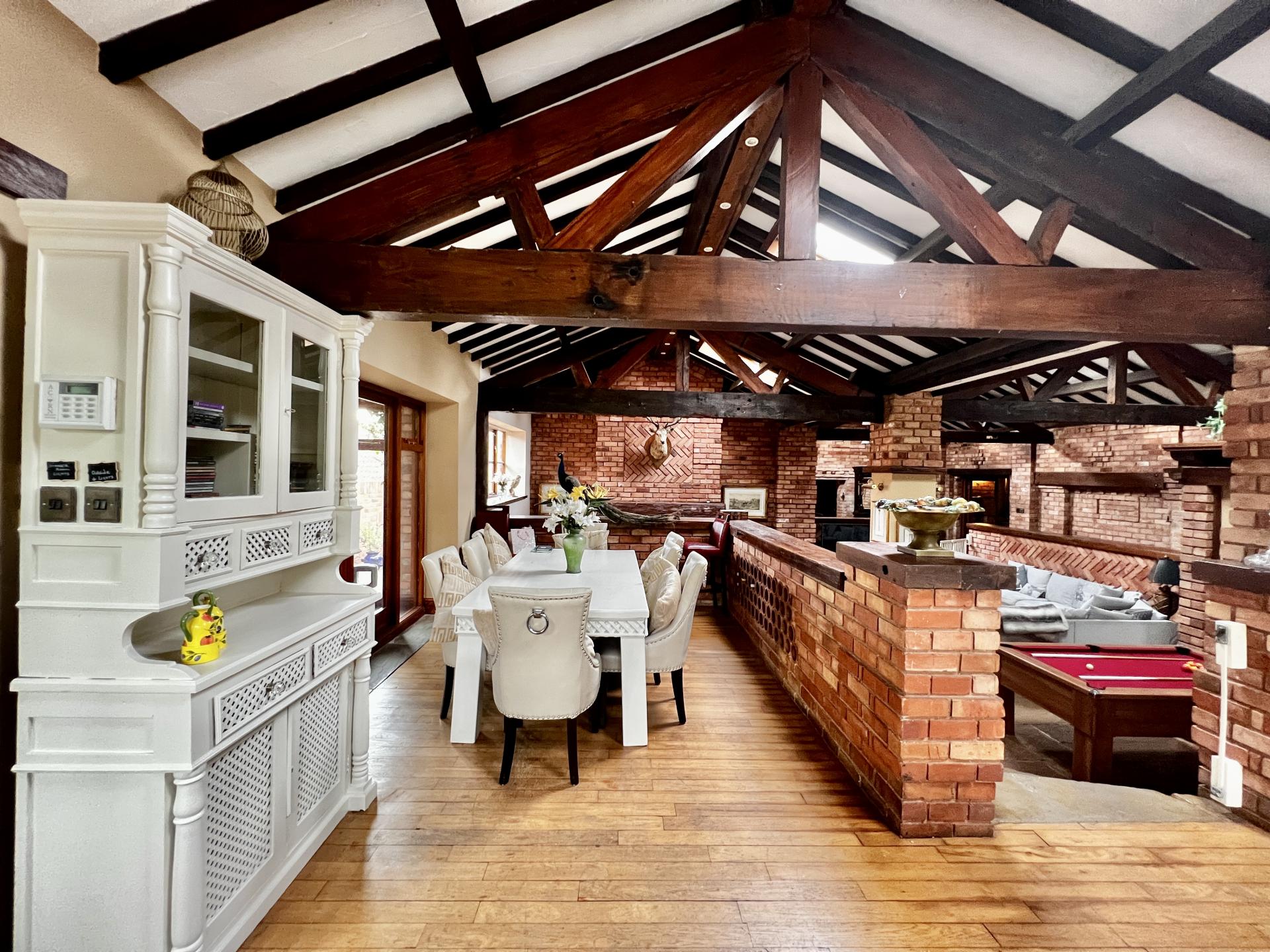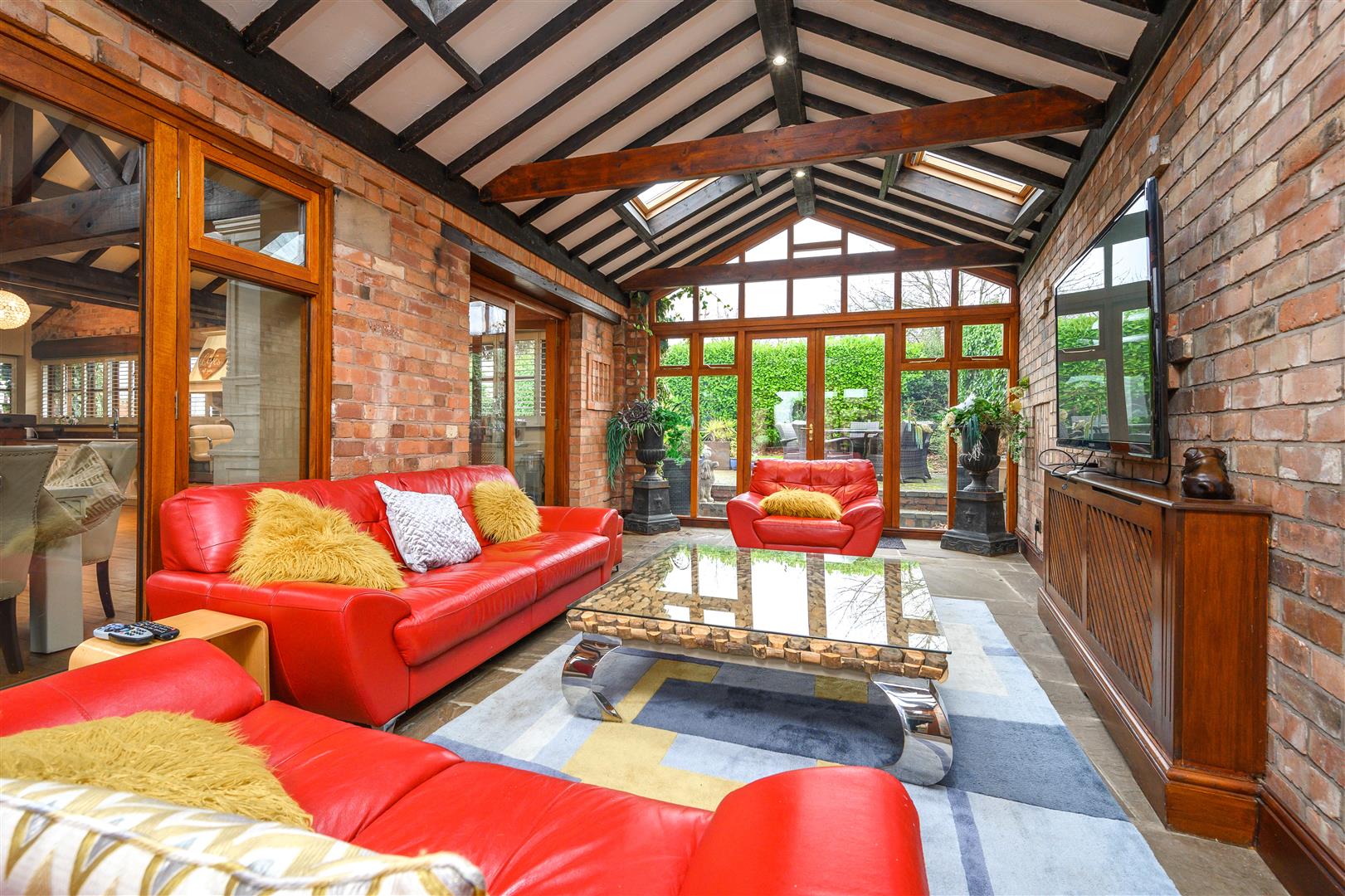 A unique characterful furnished barn conversion occupying an enviable position within this exclusive residential development nestled at the heart of the Nottinghamshire Golf & Country Club. The property sits within its fully enclosed and prominent corner plot with electric gates onto a driveway with a carport and formal gardens to the front and rear which affords spectacular panoramic views across the golf course and driving range.The property offers 4000 sq ft of living space consisting of a single storey house and converted coach house providing a 2 bedroom annexe. The house has an impressive open plan sunken living space in the heart of the property, with a kitchen, dining area, conservat...