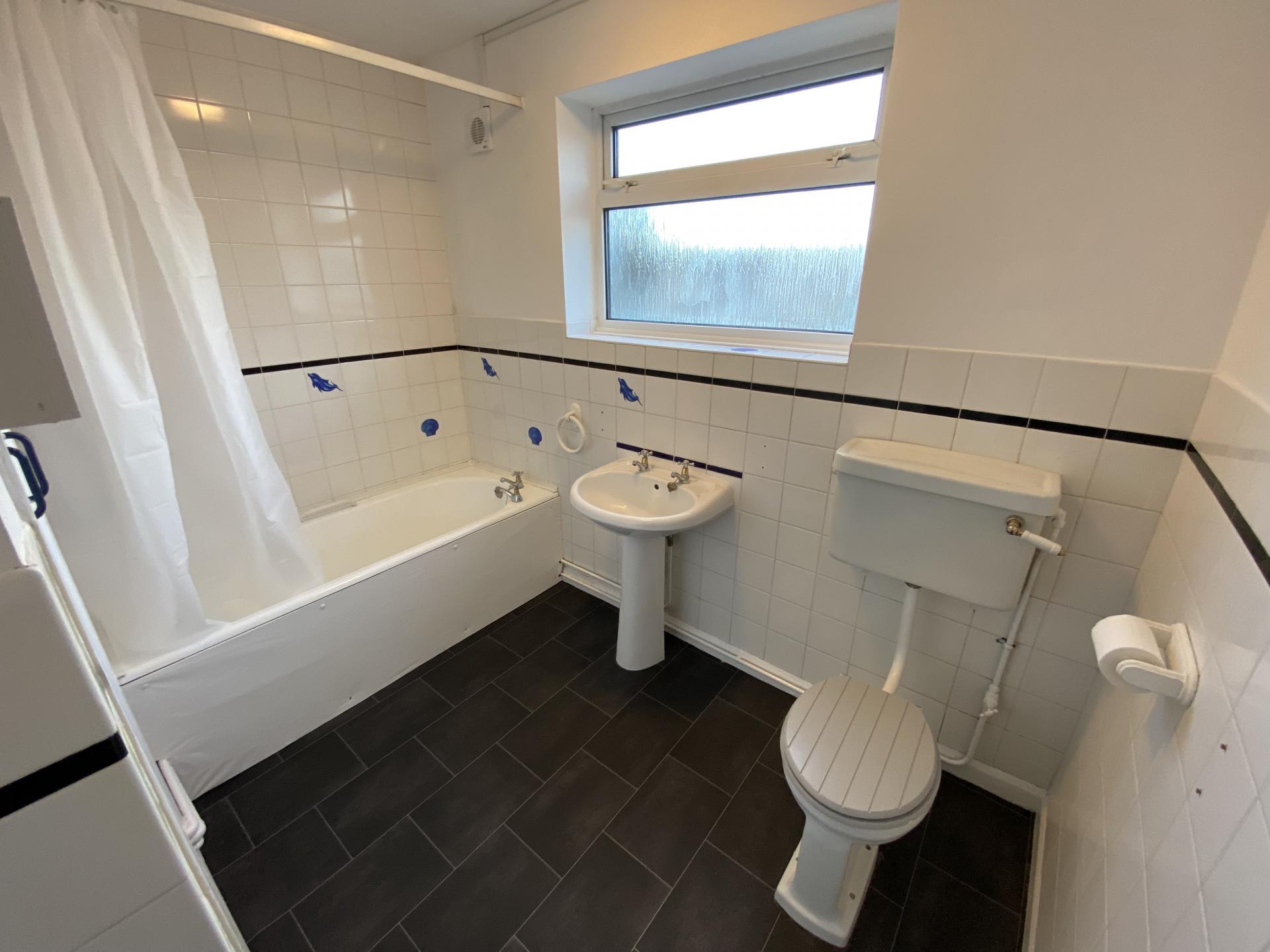 - Bathroom with over-bath shower
